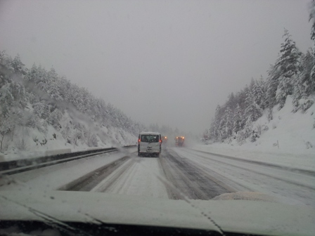 Prišli pa le smo. Mi, pa še ene par ostalih. Ene par jih je imelo 4WD, ene par zimske gume. No, kasneje smo jih videli nekaj celo z verigami. Pametno.