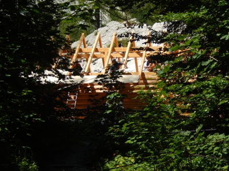 Zavetišče GRS se je izdelovalo na polno! So ravno te dni ves les zvozili gor. Žage so pele, kladiva tolkla, usta dajala povelja, toliko o ljubem gorskem miru. Sicer pa je ob milijonu ljudi v nedeljo na Okrešlju mir  le utopija...