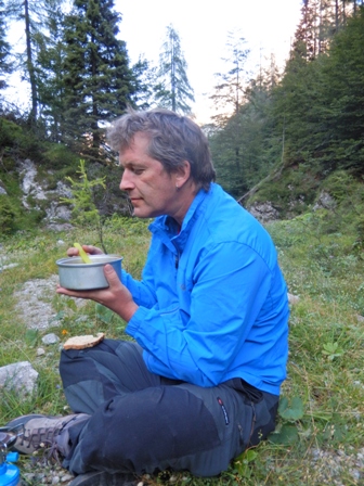 Zaradi vznemirjanja nekaterih pravovernih in drugače mislečih sem umaknil dve sliki. Po eni strani dam pravovernim prav, po drugi strani pa se mi zdi, da se na ta in podoben način le hinavsko ščitijo nekateri interesi. Tema o bivakiranju v naravi in TNP še zdaleč ni tako enostavna, da bi se lahko postavil na eno ali drugo stran, in vedno vzbuja žolčno debato med udeleženci. Vsi mi, ki radi hodimo v hribe, imamo pri tem nekaj črnega za nohti in težko je najti nekoga, ki bi bil brez greha, da lahko vrže kamen. Zato pravim, da je vse skupaj hinavsko. Vedno se vzpostavijo interesne skupine, ki predpise spišejo za druge. Vedno le in samo za druge. S tem se pa na žalost ne morem strinjat. Bistvo je v naravi in upam si trditi, da sva midva naravo vznemirjala manj kot jo je vznemirjal šušteči jadralni avion, ki je krožil okoli Grintavca.
