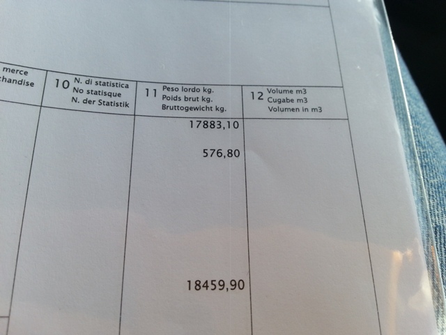 Ob 7h sva že prijavljena in dajo nama napravico, ki pove kam bova morala it razkladat. Pri vsem tistem številu ramp še dobro, bi se drugače človek kar zgubil.