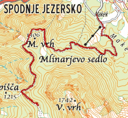 Poiščem pa dva odcepa za lovsko kočo, enkrat jo bo treba pogledat - tole je celo prav narisano.