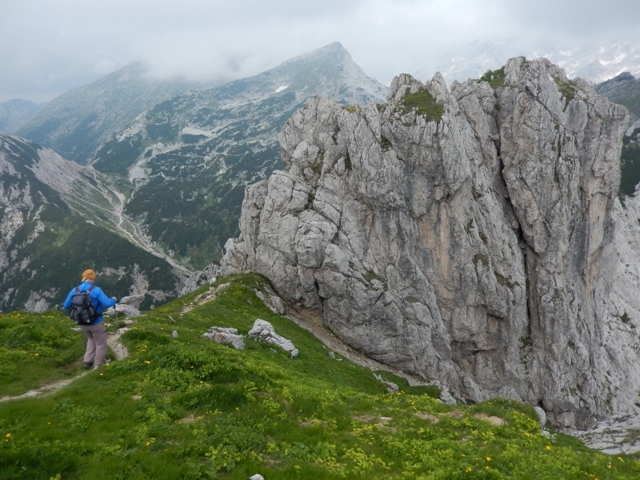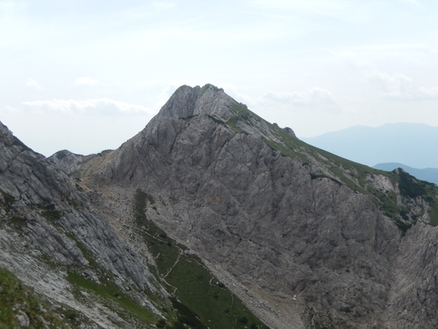 Potem spet hodiva in hodiva, vročina kar super, razgledi prekrasni, a vse se res dogaja počasi, nekje v ozadju. Tako mi šele čez čas kapne, da gledava Ojstrico.