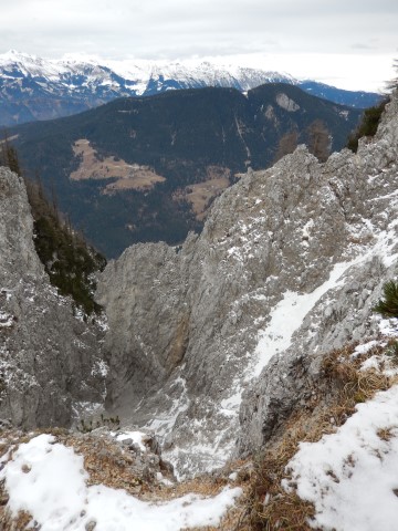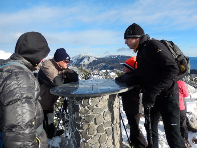 Jaz pa sem seveda občudoval Julijsko verigo, ki je v takih razmerah prav enkratna. Edino takole, v takih sneženih, jasnih dneh lahko vidiš katere gore se skrivajo v tej liniji. Poleti je vse veliko bolj mrčasto in pojma nimaš kaj je spredaj, kaj zadaj in kaj vmes. Rjavina, Vrbanove, Cmir, Stenar, Razor vse je na kupu, vse zgleda ena linija pa je vmes kar nekaj dolin.
