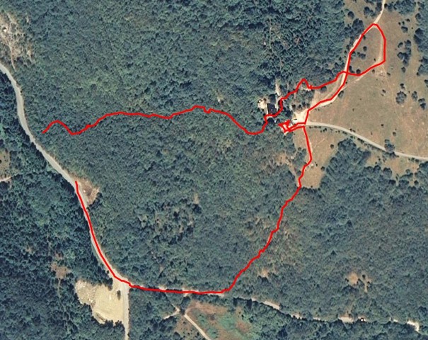 Nato sva se namenila še proti bolnici, bova šla po grebenu, mimo nekega objekta in bova že našla, ne? Pa sva res hitro našla najprej lovski dom.