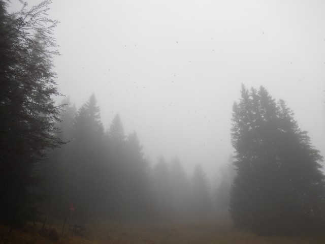 Resnici na ljubo, prav mraz že ni bilo. Od začetka je še zgledalo, da bom zmrznil, a hrib naredi svoje. Kljub tej presneti megli...