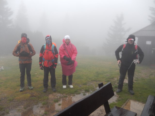 Prišla sva pa le! Sredi megle, sredi teme, direkt do koče! Juhuhuu!