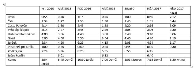V tabelo poti od doma na Veliko planino pa sva tako dodala kar dve novi koloni. Jupijajajaaaaa!