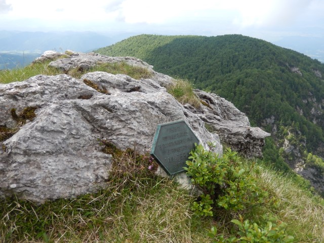 Na vrhu je malce izpostavljenosti, ni pa prav hudo, dokler ne gledaš na avstrijsko stran. Starejšemu paru pred nama je padla palica po strmini - na našo stran, ne na avstrijsko k sreči - pa se jo je možakar kar pogumno, mogoče celo preveč pogumno, spravil reševat. Tokrat mu je uspelo.