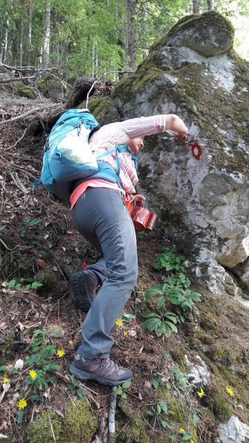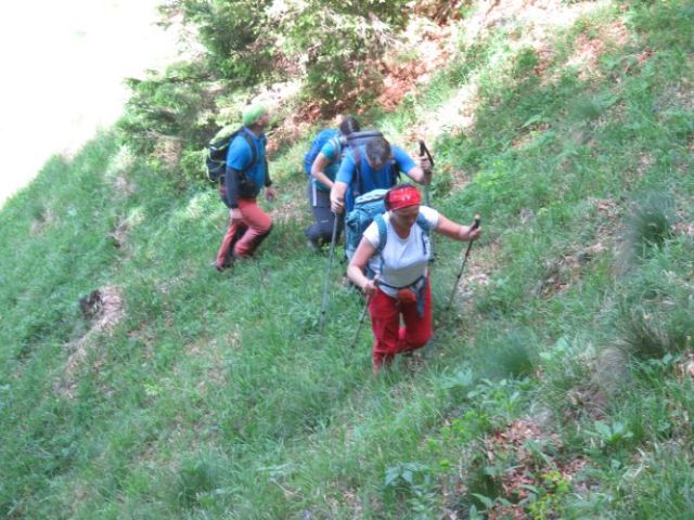 Navzgor sem bila počasna, Aleš se mi je nasmihal in potrpežljivo čakal. Navzdol pa so naju čakale strme trave. Sem čakala potrpežljivo, da se je Aleš prebil mimo svojih strahov. Na koncu sva bila oba sila zadovoljna.