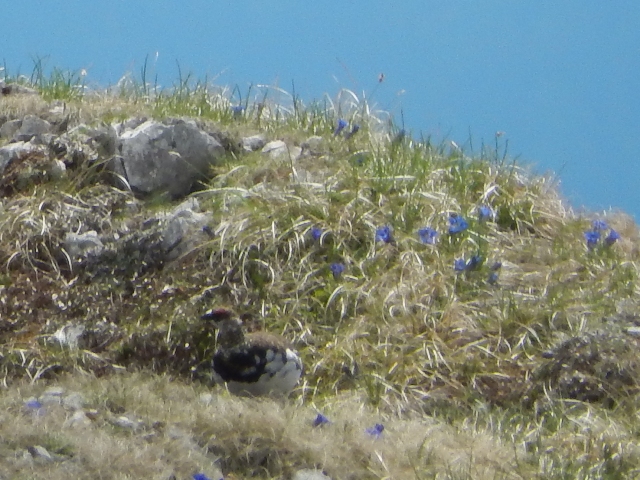 Na precej samotni poti sva najprej zaslišala oglaševanje ptice, ki jo ne slišiš pogosto. Divji petelin? No, nazadnje sva videla belko. Prvič. Je ptica, ki živi nad gozdno mejo, izključno na tleh. Spada med ogrožene vrste.