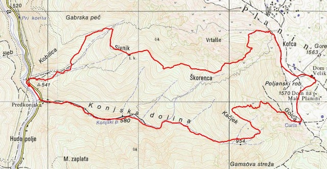 Pravzaprav gre za "trim pohod". Po dolini Konjske (brezpotje) do opuščene lovske steze čez Kačjek in mimo Golce in Curle na Malo planino. Možen postanek pri Domžalskem domu. Nato do Vovkove jame in pod Planjavo čez Lopato (brezpotje) do Sivnika in navzdol do Dedkovega kamnoloma, kjer bo zaključek pohoda."