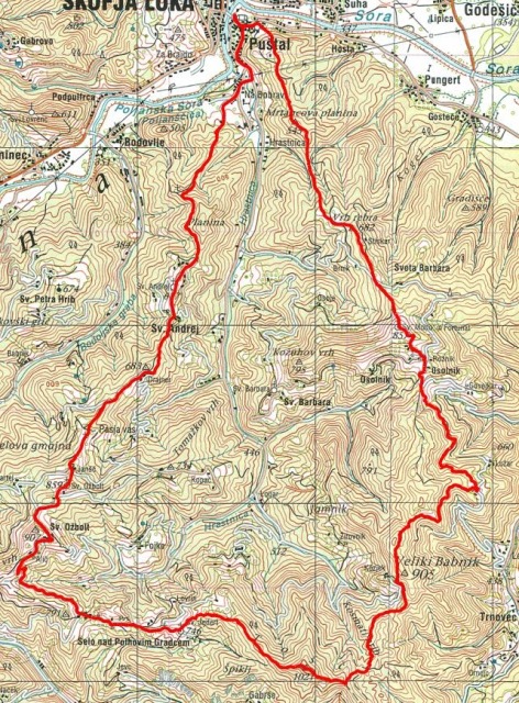 Škofja Loka – Sv. Andrej – Tošč – Dom na Govejku – Osolnik - Škofja Loka