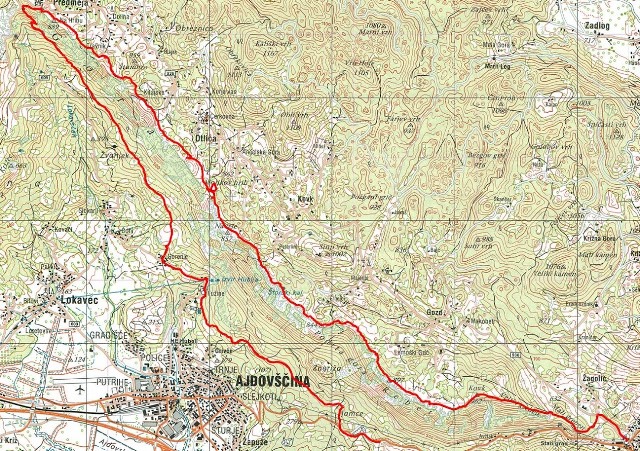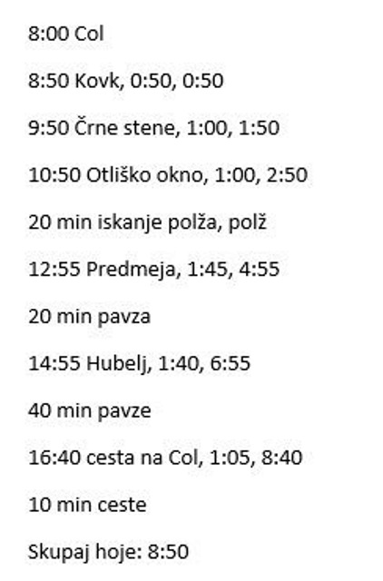 Col – Kovk – po Robu mimo Otlice do Predmeje – izvir Hublja – prečno do ceste Ajdovščina Col