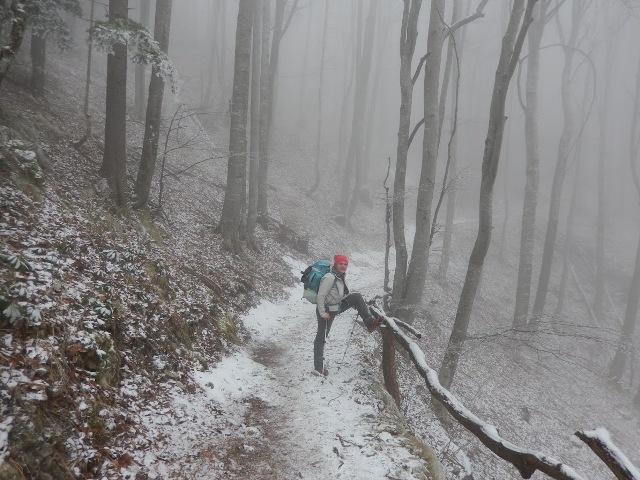 Zaradi pretežkih nahrbtnikov in snega ter megle je bila pot navzgor zelo naporna in utrudljiva. Vse skupaj bilo kar malo preveč za najina nahrbtnika in najine moči. Namerjenih 1.300 višincev, 31.617 korakov in 28 km (v obe smeri).