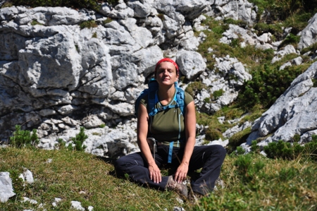 Še zadnja preizkušnja. Ponovno spoznavanje s kamni. Tokrat tudi malo pobliže. Kamni v zadnji grapi so povsem vlažni in spolzki. Nepreviden korak in že je padec neizogiben. Potem nadaljujeva še bolj previdno in počasi.