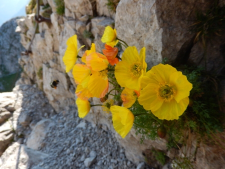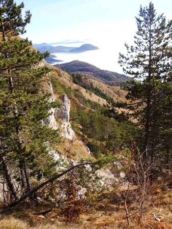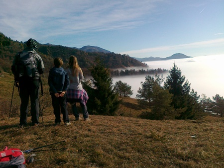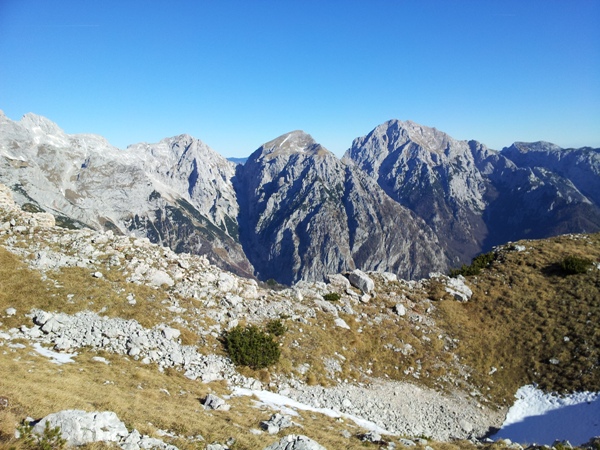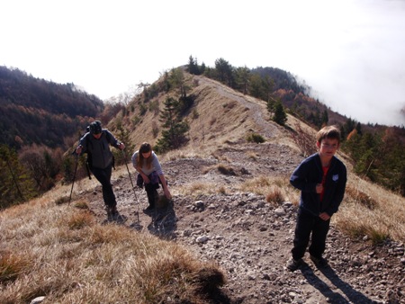 Dohiti nas druga skupina in misleč, da pogrešamo družbo, prisedejo. Nismo pri volji za druženje. Odpravimo se še višje.