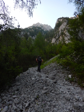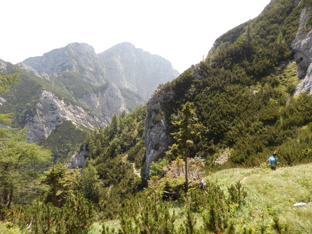 Pot se vije med rušjem, ki z neverjetno močjo in vztrajnostjo vedno znova zarašča tudi že odkrite dele poti. Vročina ne popušča. Vročina narašča. Bolj ko se spuščamo v dolino Kamniške Bistrice, bolj soparno je.