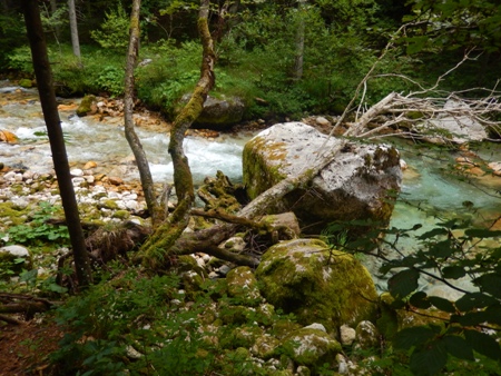 Tu nekje se odcepi pot za slap Orglice. Morala bi se. Pa je od žledu vse razbito, slabo prehodno. Čas je za Alešev vložek. Brezpotje kot obvezna sestavina vsakega pohoda. Z zadnjimi atomi se prebijam čez vejevje, v mislih se mi riše prizor; slap buči prek sten, odvržem oblačila in se postavim pod ledeno vodo. Ko zaslišimo vesele vzklike ljudi, ki s privzdignjenimi krili brodijo po kotanjici z vodo, to je vse kar je ostalo od slapu, se poklapano obrnemo.