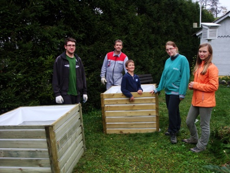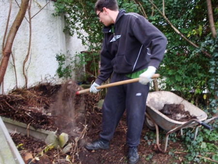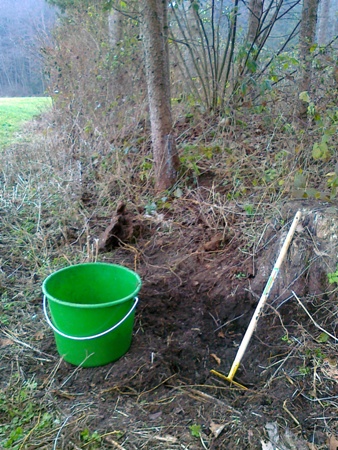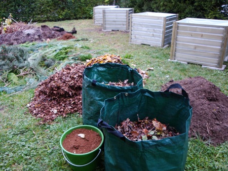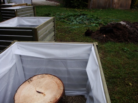 Tako smo zgodaj jeseni začeli z zbiranjem vsega potrebnega materiala, ki je bil pri roki. Mitja se je spoprijel s praznjenjem starega kompostnika, kamor smo odmetavali predvsem pokošeno travo in ostanke žive meje.