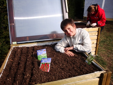 Po treh tednih so vrstice mladih sadik že vidne. Veselje in pričakovanje pa je še vedno veliko.