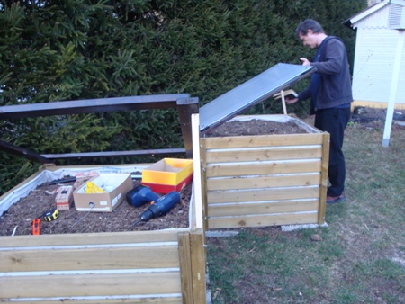 Februarja je bil na vrsti domači mojster, ki je naredil pokrove in visoke grede so se spremenile v prave tople grede. Zemlja se še ni prav veliko posedla, prostora za rast še ni veliko, zato bodo pokrovi primerni samo prvi in drugi mesec. Kasneje pa jih verjetno ne bomo več potrebovali.