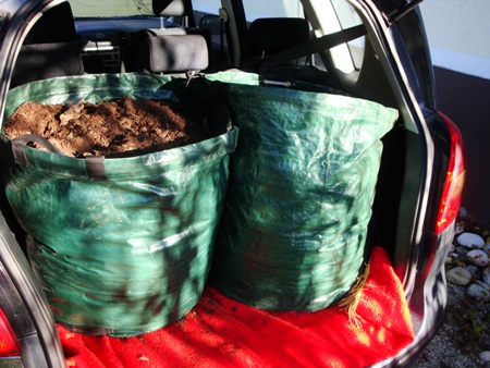 Za dobro "vrtno" zemljo pa smo se zapeljali vse do Krškega polja, kjer smo naložili vreče s konjskim humusom. Pravijo, da je najbolj hranilen od vseh gnojil. Kako smo vozili? Z avtom, seveda.
