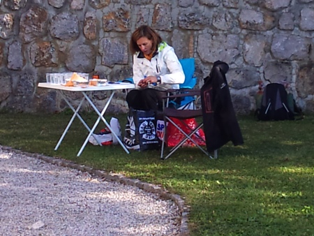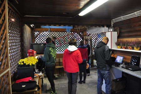 Pa so nas zjutraj prvi tekmovalci vseeno prehiteli. Preden sva z Janezom odprla okno, sva že imela prve obiskovalce. Še dobro, da smo potem vse prijavljene sprejemali kar noter, v sobici s kaloriferjem. Zjutraj je bil pošteni mraz, malce pod nulo in prste sem imela takoj popolnoma trde.