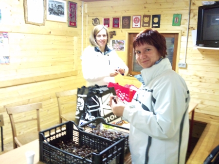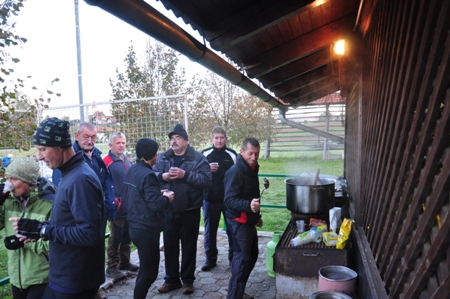 Medtem so v brunarici Franci, Joži in Martina skrbeli za lačne in žejne. Žine je častil sveže stisnjen jabolčnik. Marjan in Roman pa sta bila glavna distributerja za vse kar je bilo treba še pripeljat.