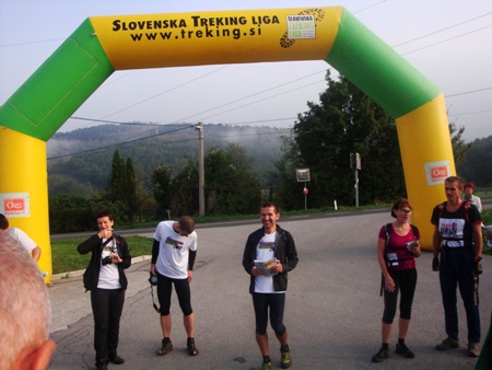Pohodnike z Aktivne sta ob 10h Marjan in Roman spremljala del poti v svetlečih jopičih in z njimi varno prečila moravško cesto. Šele tam so si lahko tekmovalci dali duška in tekli po progi do cilja. Tevž, Žan in Peter so jo pretekli v dveh urah in petnajst minut.